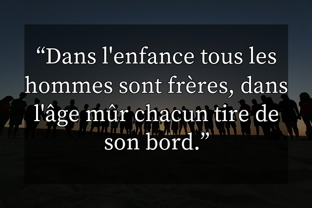 Dans l'enfance tous les hommes sont frères, dans l'âge mûr chacun tire de son bord.