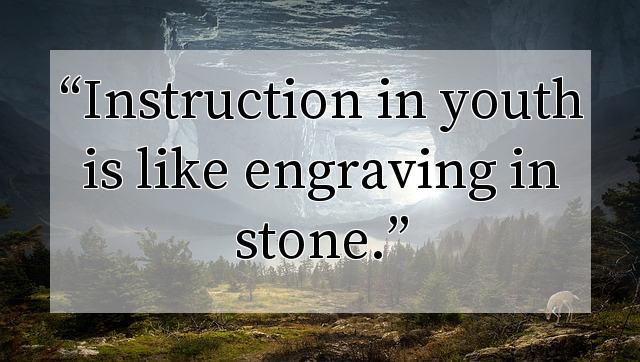 Instruction in youth is like engraving in stone.