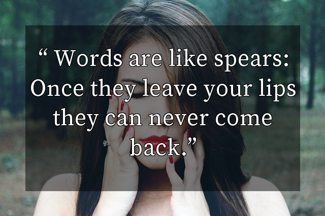 Words are like spears: Once they leave your lips they can never come back.