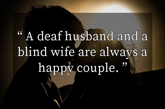 A deaf husband and a blind wife are always a happy couple.